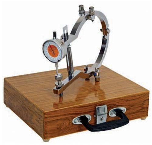 It sounds like you’re describing a lateral extensometer used for measuring the lateral extension (or strain) of a 150 mm diameter x 300 mm high cement concrete cylinder during compression testing. Designed for 150 mm diameter x 300 mm high cement concrete cylinders. Two Movable Frames Pivoted at one end to allow precise measurement of lateral deformation. Dial Gauge Measures lateral extension with a resolution of 0.002 mm and a range of 10 mm. Removable Spacer Strip Used for initial calibration/setting of the dial gauge. Mounting Mechanism Secured to the specimen using screws. Packaging Supplied complete with the dial gauge in a wooden case for storage and protection.