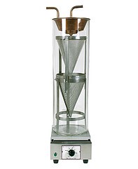 You’re referring to a simpler apparatus that operates on the same principle as the Reflux Extractor 4000 GMS, which is used for bitumen content determination in asphalt mixtures through solvent reflux extraction. The simplified version you described includes a cylindrical glass jar, two metal cones made of stainless steel cloth, a metal condenser, 100 filter papers, a wire gauge, and a hot plate. Below is a concise explanation of this apparatus and its operation